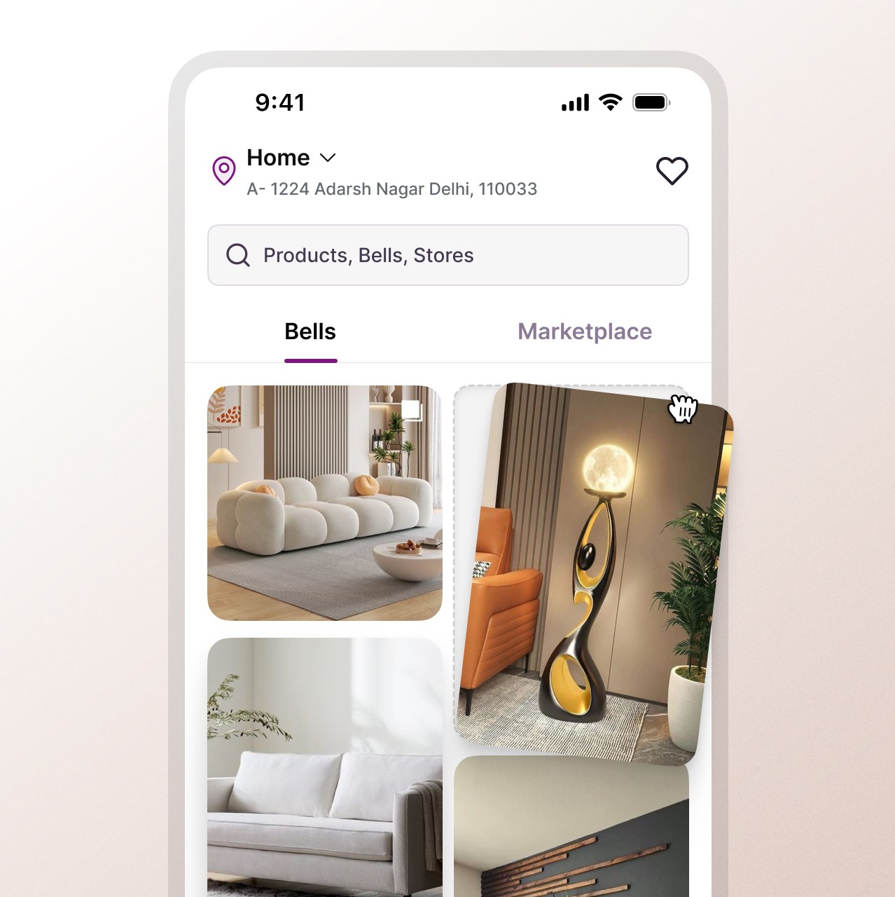 Introducing "Bells" A dedicated social media feature where users can post and seek inspiration related to home furnishing. Bells fosters a community-driven space for sharing ideas, discovering trends, and engaging with others on the platform. By encouraging users to actively participate, Bells helps increase engagement while guiding users seamlessly from inspiration to informed purchase decisions.